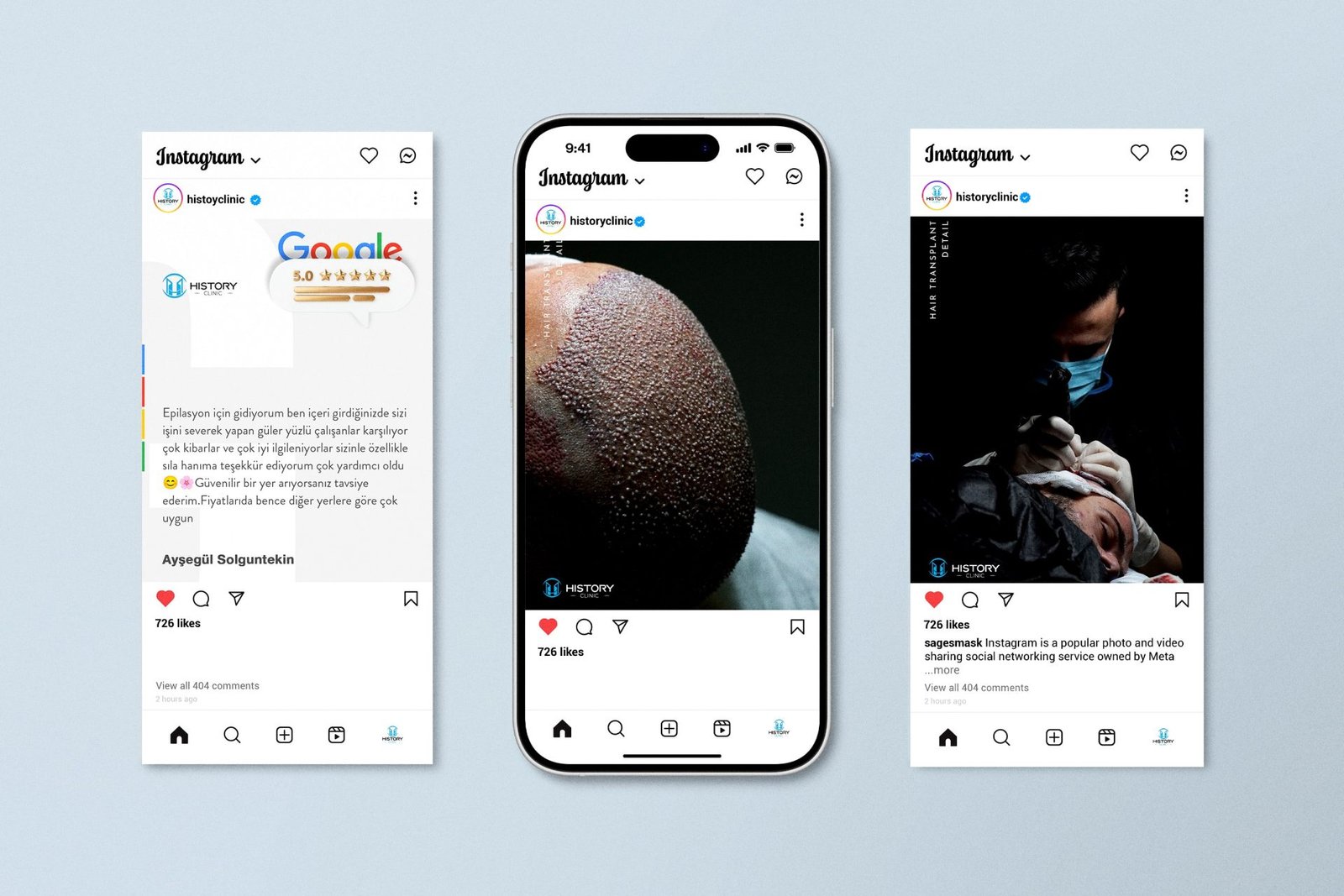 History Clinic ile gerçekleştirdiğimiz sosyal medya çalışması, markanın sadece estetik değil, dijitalde de uzman ve güvenilir bir kimlik kazanmasına katkı sağladı. Saç ekimi gibi uzun araştırma ve güven ilişkisi gerektiren bir alanda; doğru içerik, güçlü görsel dil ve stratejik paylaşım planı ile markayı dijitalde hak ettiği konuma taşıdık.